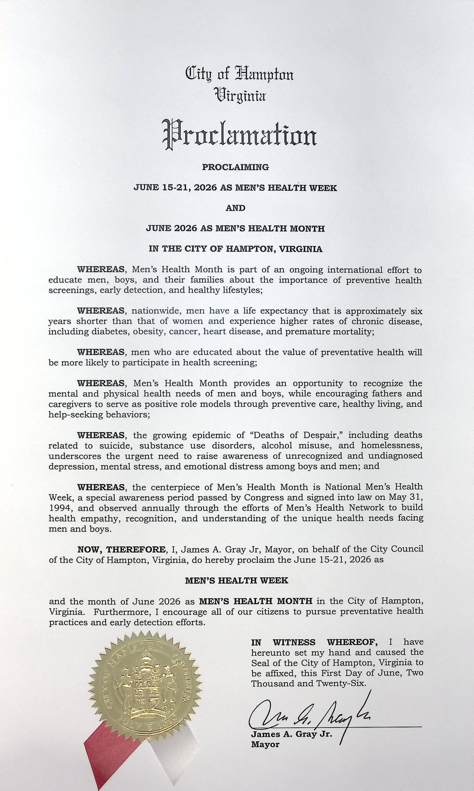 Men's Health Month and Men's Health Week Proclamations - Cities