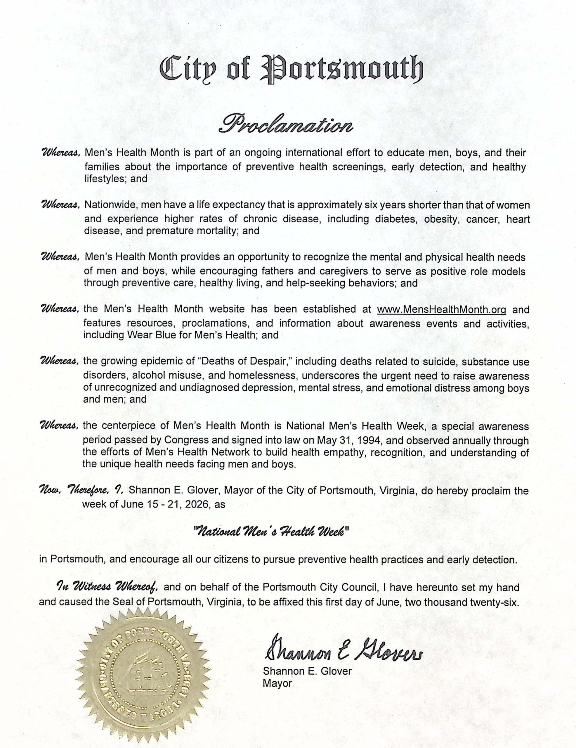 Men's Health Month and Men's Health Week Proclamations - Cities