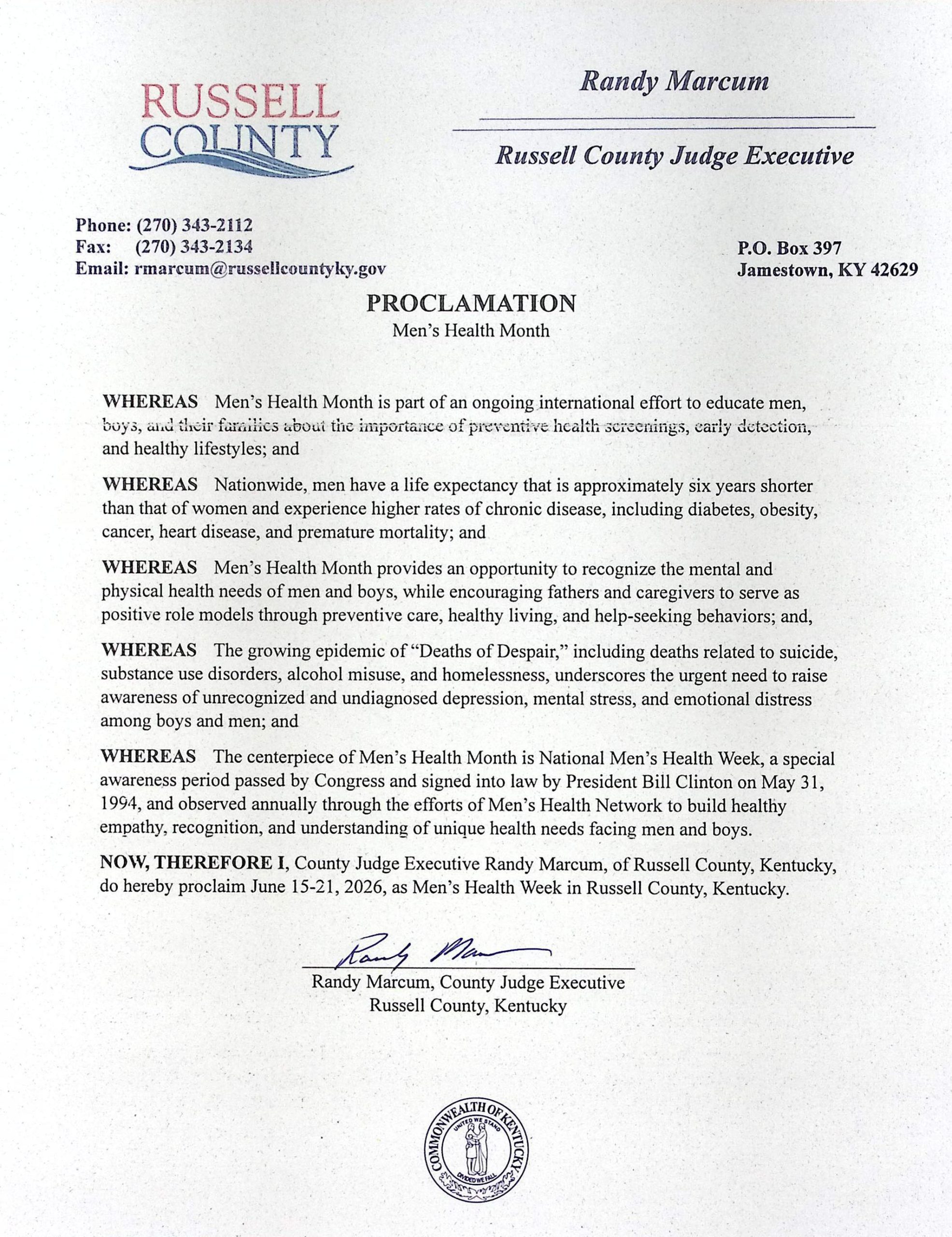 Men's Health Month and Men's Health Week Proclamations - Cities
